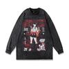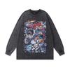 Heavy Weight Cotton Long-Sleeved T-Shirt For Men And Women, Dark Cartoon Print Fried Color, Retro Bottoming Pullover Sweater