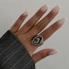 Elegant Black Diamond Acrylic Geometric Square Ring