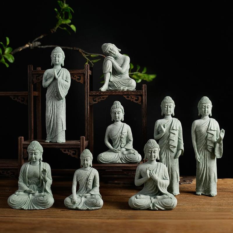 1 szt. Mini Figurka Buddyzmu Dekoracja Biurka Dekoracja Domu Statua Zen Zielony Piaskowiec Ornament Tajlandia Statua Buddy Ozdoba Ogrodowa Dekoracja Akwarium