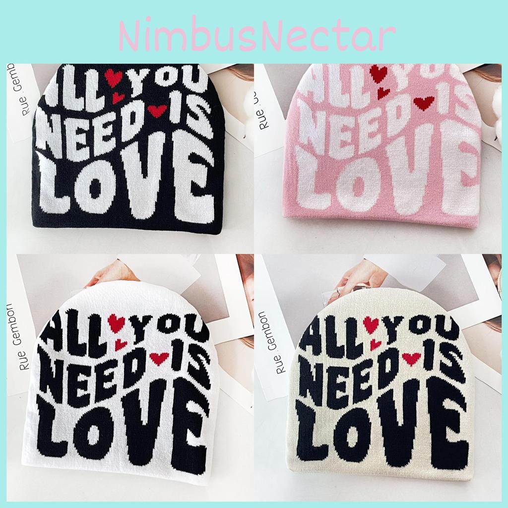 Simple Color Blocked Letter Heart Pattern Women Casual Warm Knitted Hat For Winter Outdoor Warmth