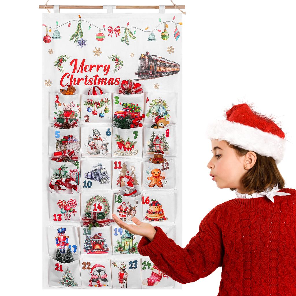 Tkaninowy Kalendarz Adwentowy Świąteczny Z Kieszonkami 24 Dni Odliczanie do Świąt Kalendarz Adwentowy Wiszący Kalendarz Odliczający Do Wypełnienia Reus