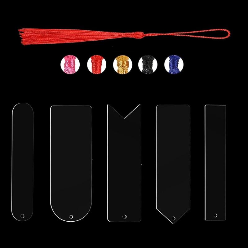 10Pcs Unfinished Acrylic Bookmarks with Tassels Bookmarks Paintable Page Marker for Adult Kid Painting Art Craft Project