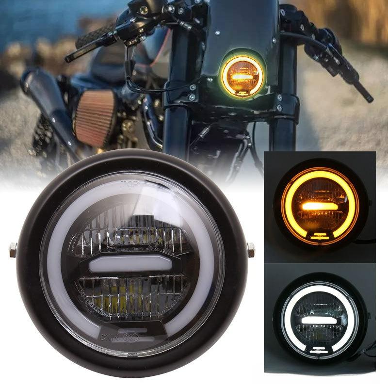 6.8 Inch Led Motorcycle Headlight Assembly With Brackets High Low Beam Halo Drl Running Light For Retro Cafe Racer Harley
