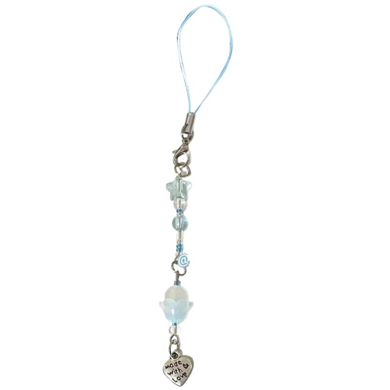 Handcrafted Phone Charm Acrylic Beaded Keychain Colorful Star Heart Keyring Cute Acrylic Ornaments for Mobiles Bag