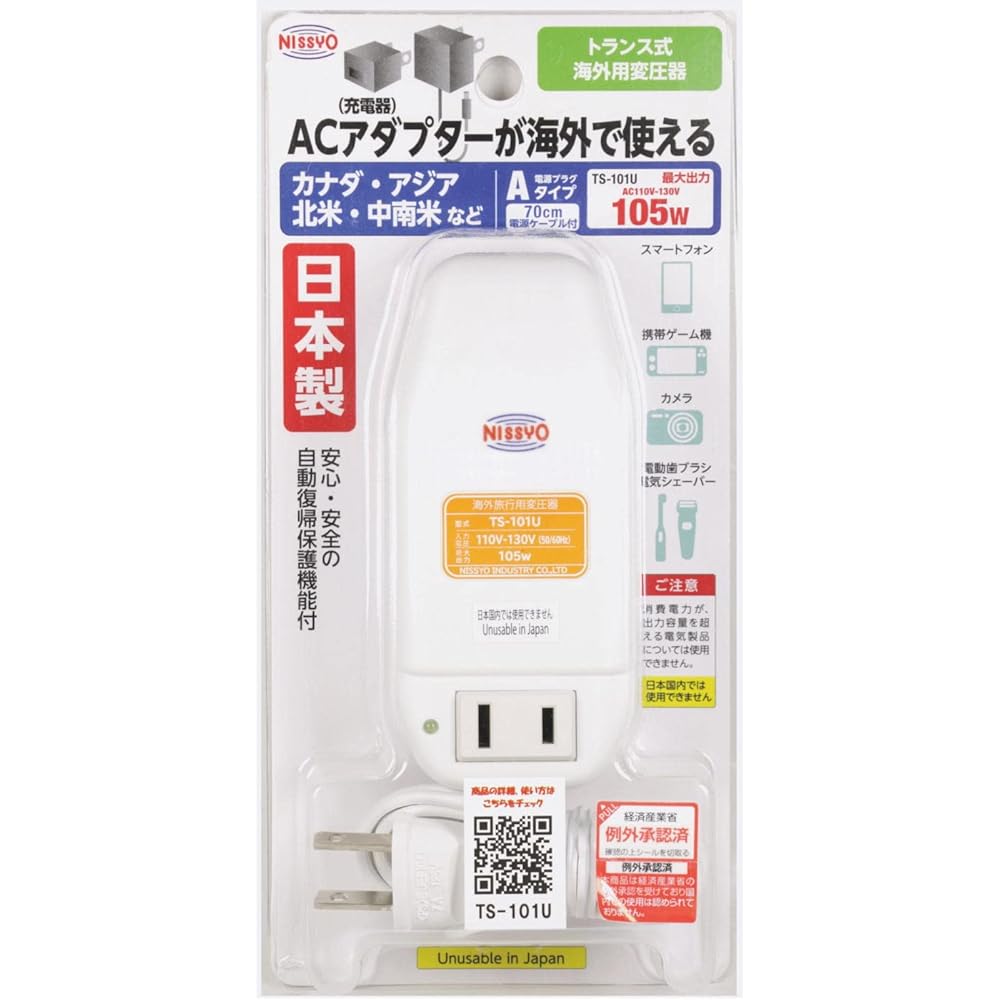 Nissho Kogyo TS-101U Transformer, AC110V~AC130V (50/60Hz) to AC100V, 105W, for International Travel