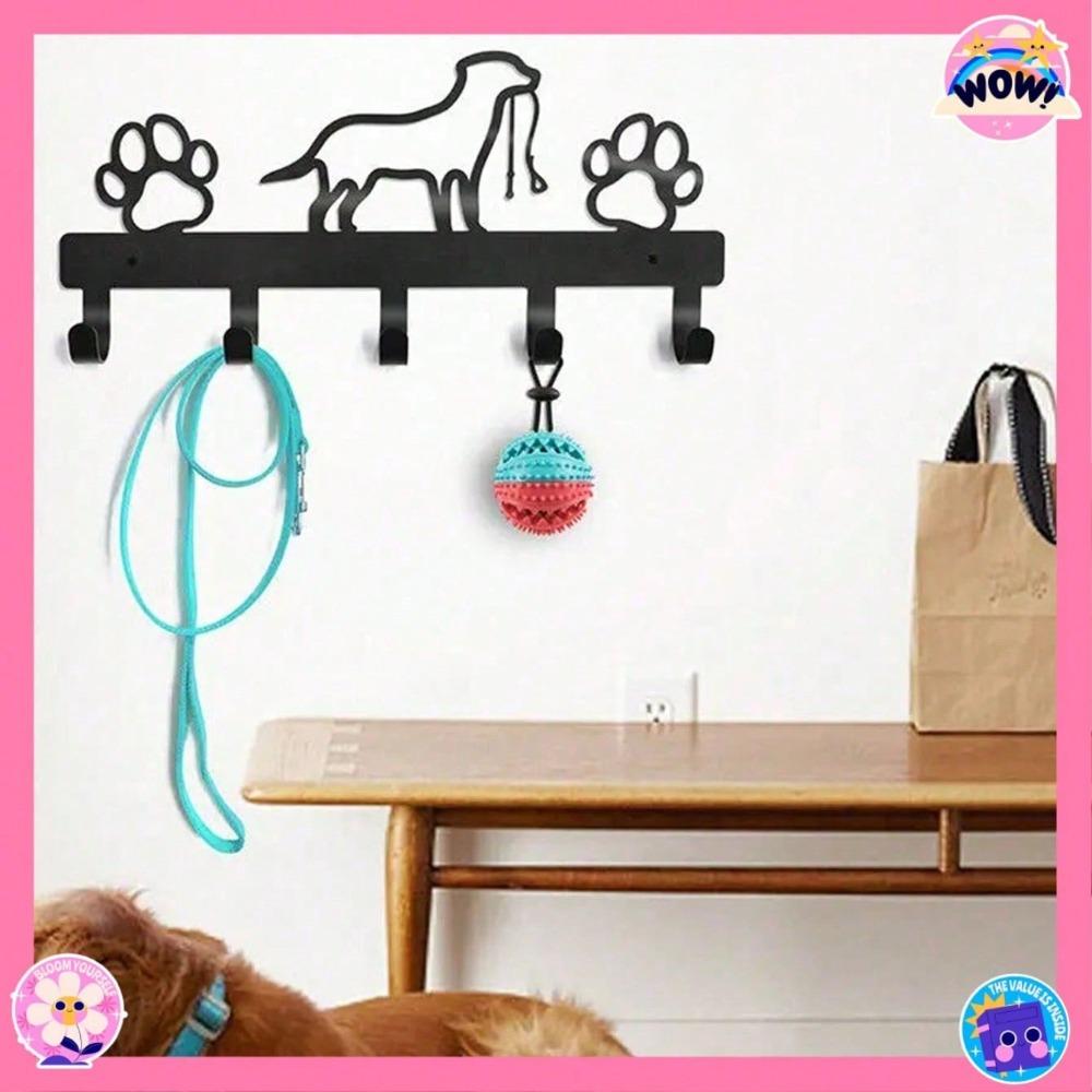 Wrought Iron Dog Paw Organizer, 5 Hook Metal Wall Mounted Rack for Entryway, Hallway, Keys, Leashes, Towels, Pet Lover Gift, Storage