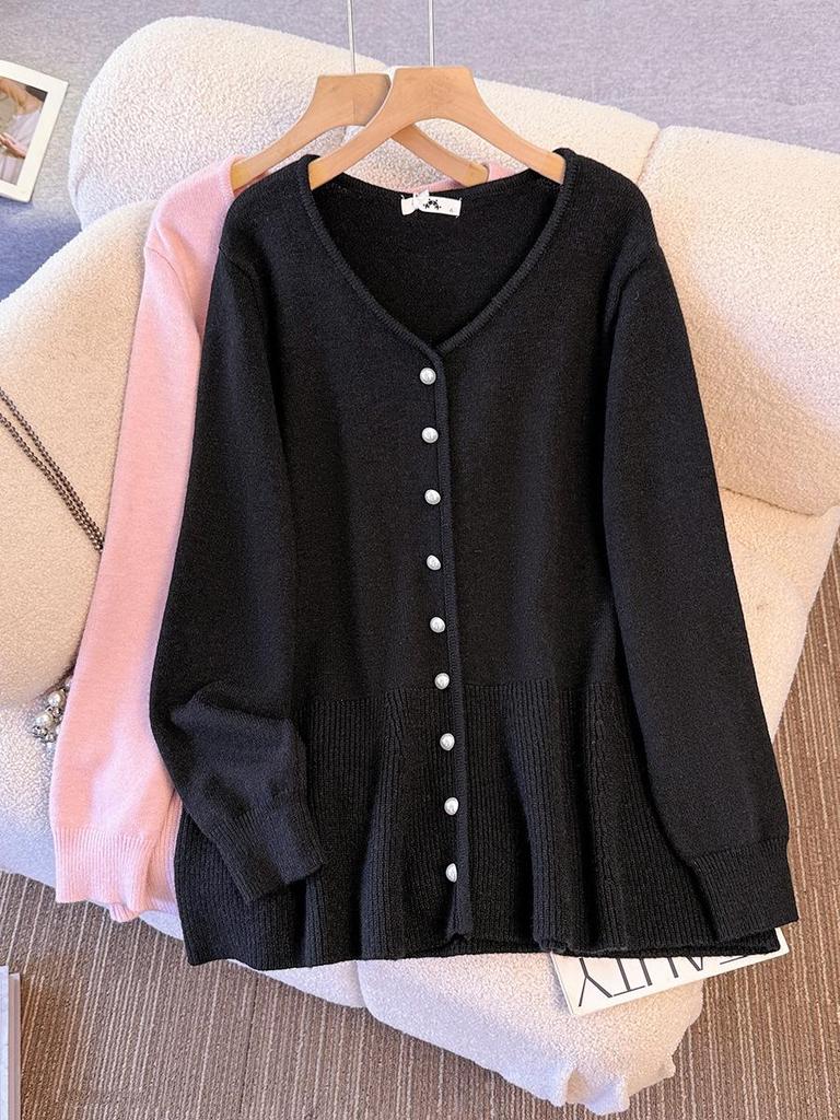 This stylish cardigan sweater is designed for plus-size women who appreciate Korean fashion trends. Perfect for autumn and winter, it features a slimming knit construction with long sleeves, making it both cozy and elegant. The loose fit ensures comfort, while the V-neck design adds a touch of sophistication. Crafted from high-quality polyester, it offers a soft and durable wear experience. This versatile top is an ideal addition to your seasonal wardrobe, effortlessly combining warmth with contemporary style.