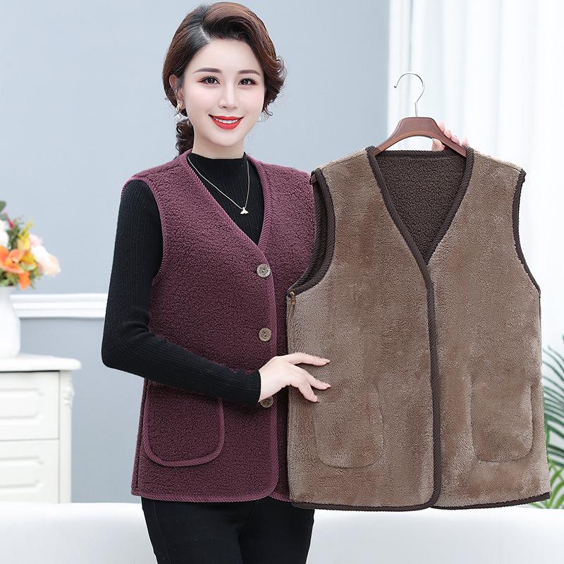 This elegant outerwear vest is designed specifically for middle-aged mothers, combining style and warmth for the winter months. Crafted with a unique fur material, it features a medium thickness to provide cozy comfort without bulkiness. The sophisticated V-neck design enhances its stylish appeal, while practical pockets offer convenient storage. Perfect for adding a touch of elegance and warmth to any winter wardrobe.