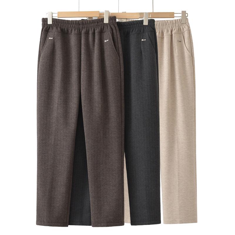 Grandma's Fleece-Lined Warm Straight-Leg Pants: Casual for Autumn and Winter, Perfect for Middle-Aged and Elderly Women