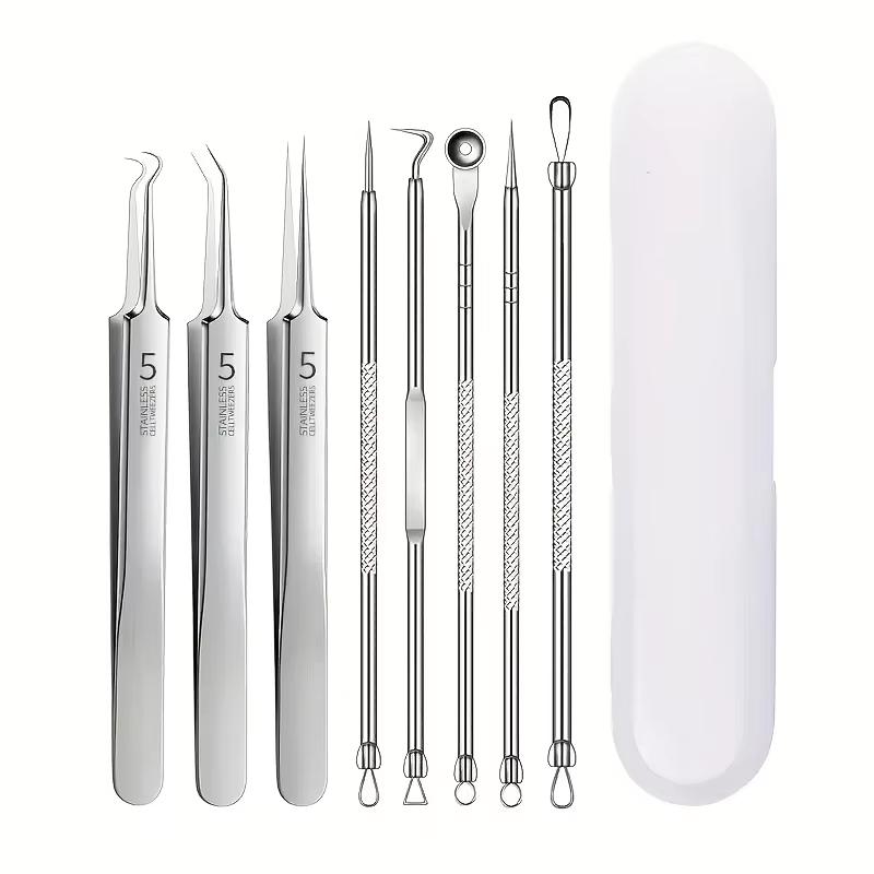 8 Pcs Blackhead Remover Kit – Stainless Steel Blemish & Acne Extraction Tools – Professional Pimple Popper Set for All Skin