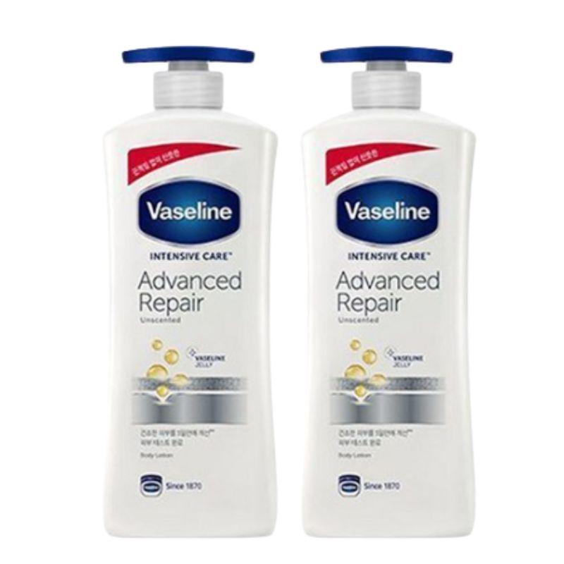 Vaseline Intensive Care Advanced Repair Body Lotion Fragrance Free is a deeply moisturizing formula designed to heal and restore very dry skin. Enriched with micro-droplets of Vaseline® Jelly, it helps lock in moisture and support the skin’s natural barrier for long-lasting hydration. The fast-absorbing, non-greasy texture provides immediate relief from dryness without irritation. This value set includes two 600ml bottles, perfect for daily family body care.