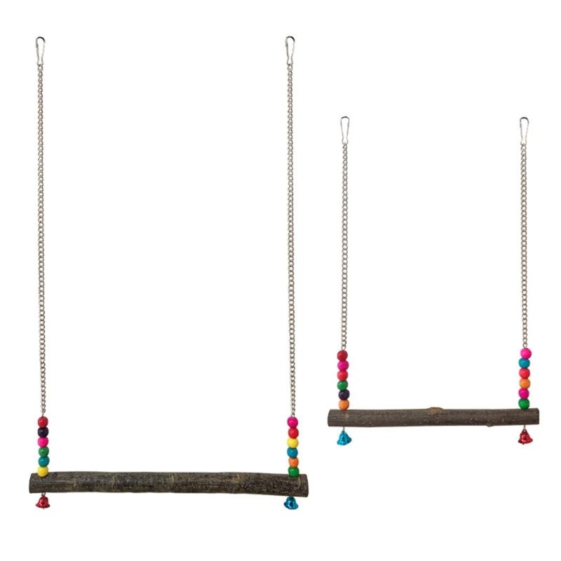 Parrots Toy Hammock Swing Toy Swing Standing Training Supplies Toy Wood Hammock with Colorful Beads Toy