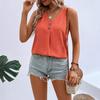 Summer New Women's V-neck Button-down Sleeveless Vest Solid Color Loose Casual T-shirt Top