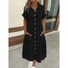 Wish summer solid color simple collar button long dress women's clothing