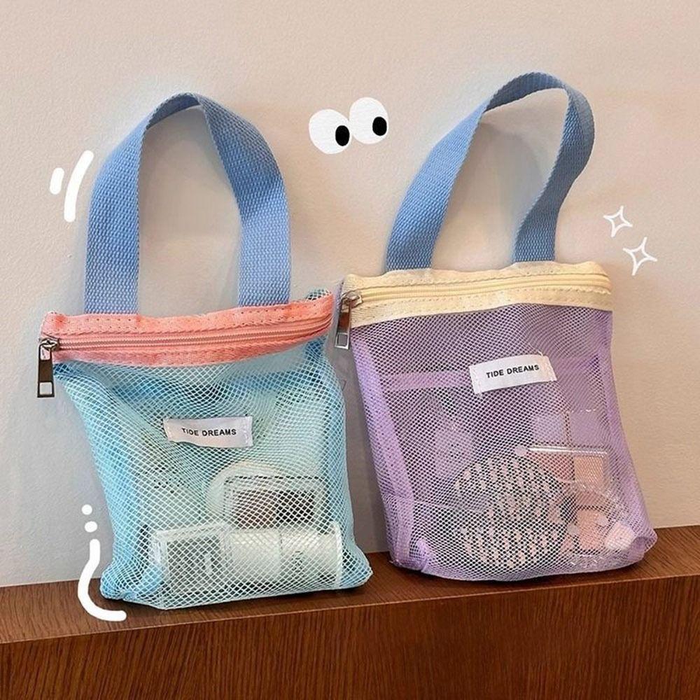 1. Transparent and visible, quick access.Clear at a glance: The mesh material allows the contents to be clearly visible, and items such as makeup brushes, toothpaste, and samples can be located without searching, saving time.