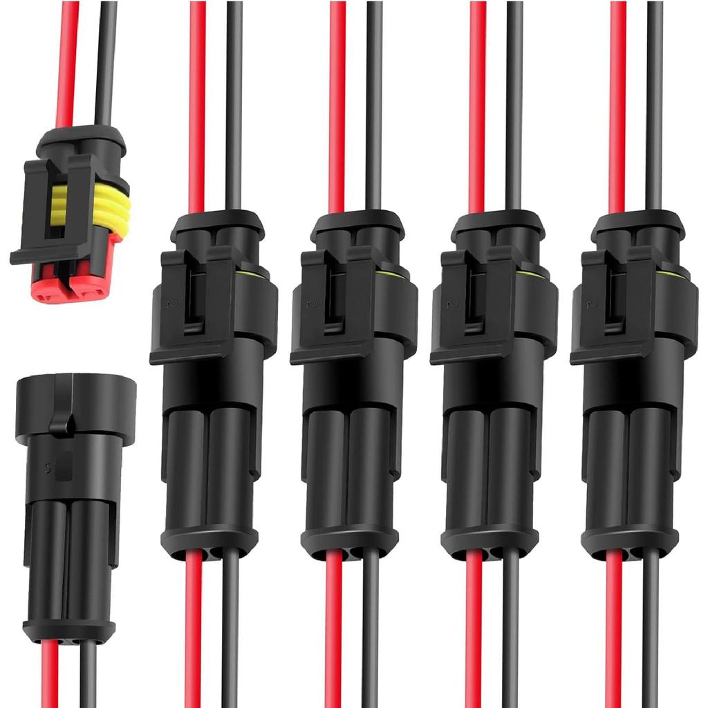 SensaBliss 5 Kit 2 Pin Waterproof Connector 2 Pin Way Car Waterproof Electrical Connector Plug Wire 20AWG Marine Waterproof Coupler 2 Pin 2 Pole