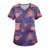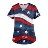 Ladies' Independence Day printed fashionable V-neck pocket short sleeved uniform and caregiver top