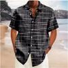 Men's Summer Green Grid Print Hawaiian Shirt Casual Short Sleeve Beach Shirt