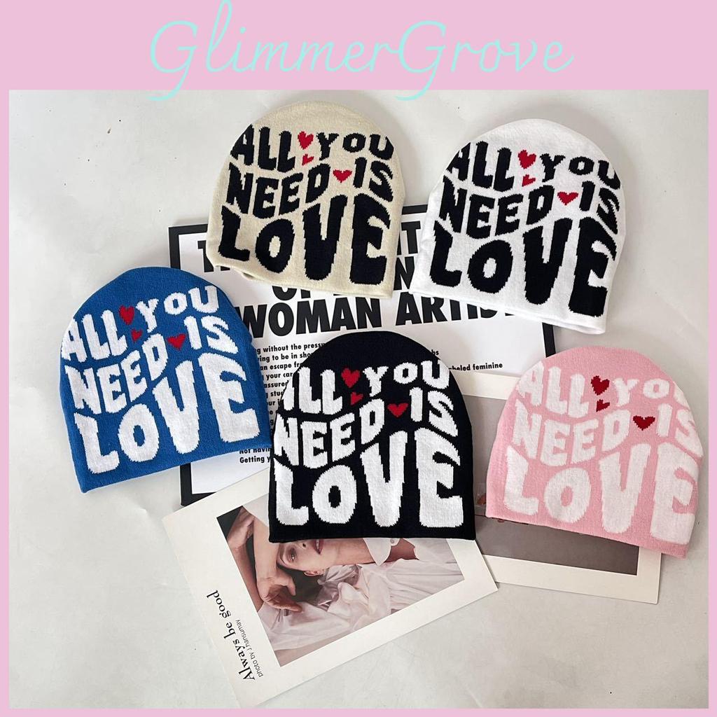 Simple Color Blocked Letter Heart Pattern Women Casual Warm Knitted Hat For Autumn Casual Wear
