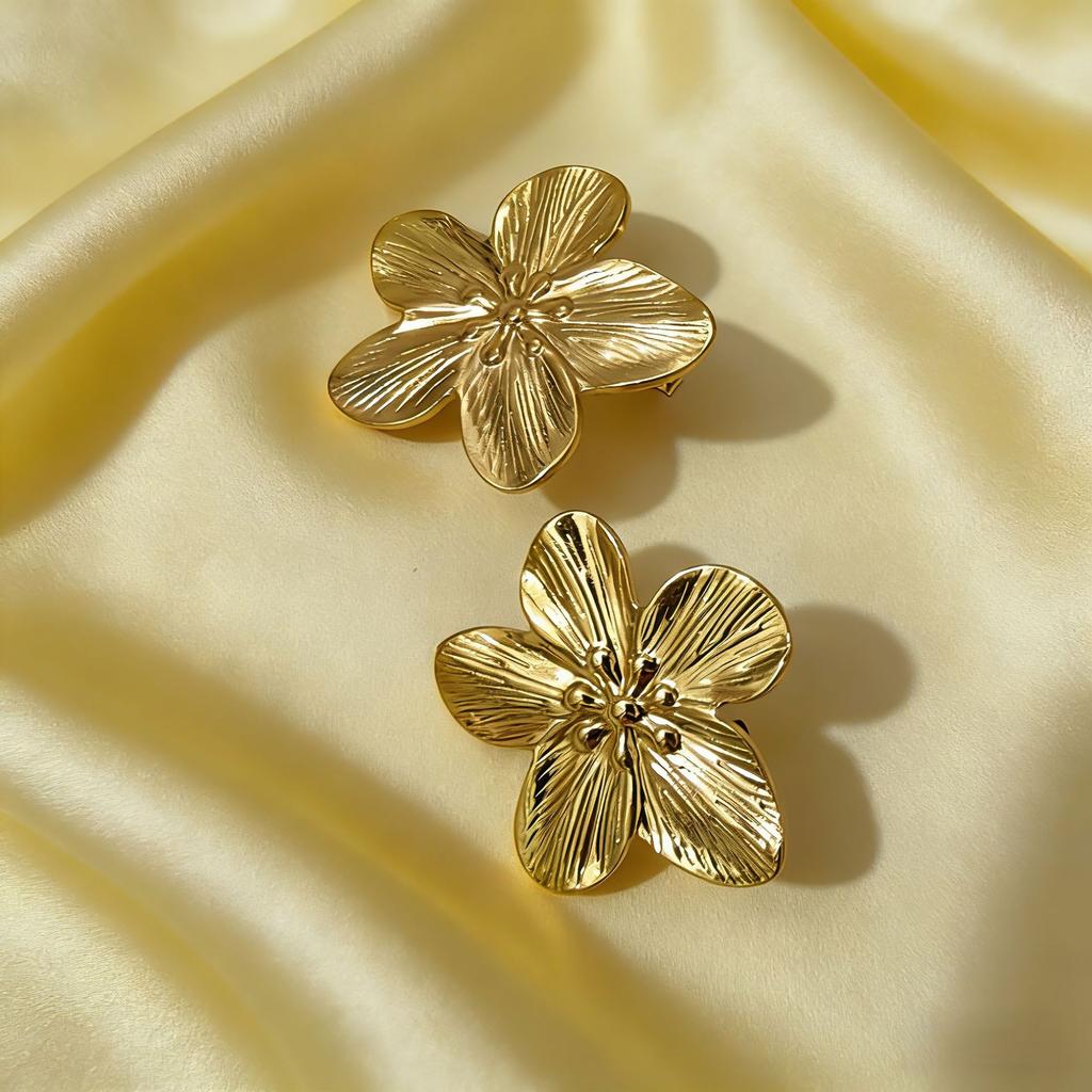 European and American ins wind gold titanium steel flower earrings retro simple atmosphere explosive earrings female spot