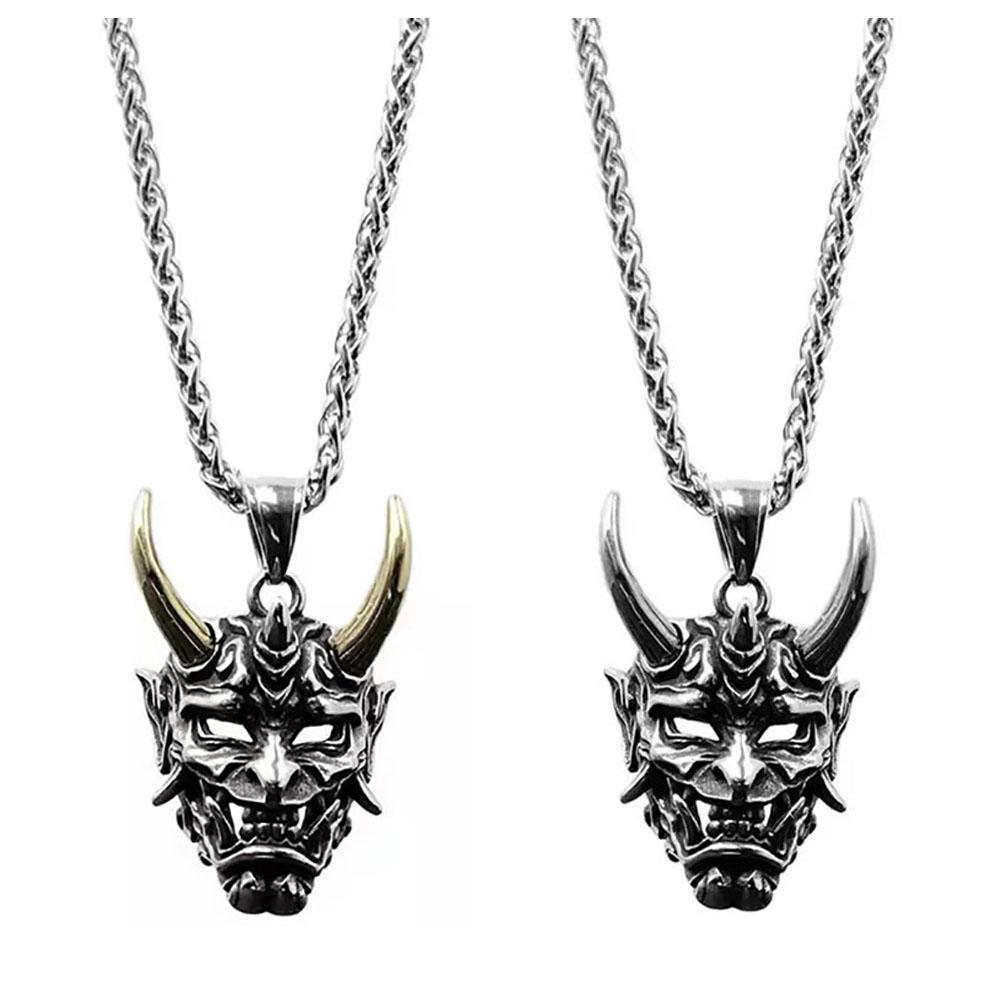 Retro Gotycki Punkowy Naszyjnik Prajna Duch Szatan Kieł Zła Maska Mężczyźni Potwór Gniew Hannya Rogi Wołu Czaszka Rock Wisiorek Biżuteria Prezent
