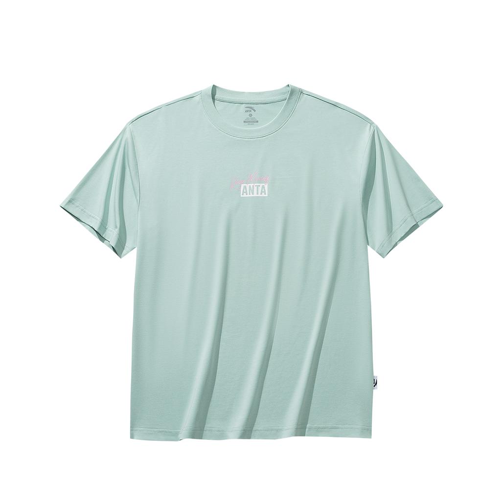 Anta Short Sleeve Knitted T-Shirt Summer Loose Casual Tee Unisex tops Rain-Mist-Blue 972628106-2