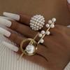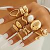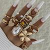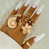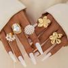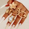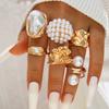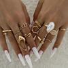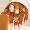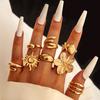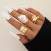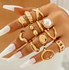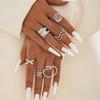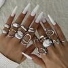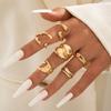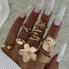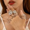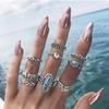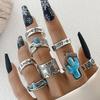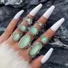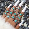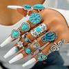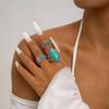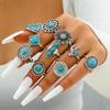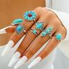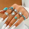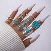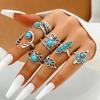 European and American Ethnic Style Carved Feather turquoise Ring Retro Personality Ring Set Combination Ring Set