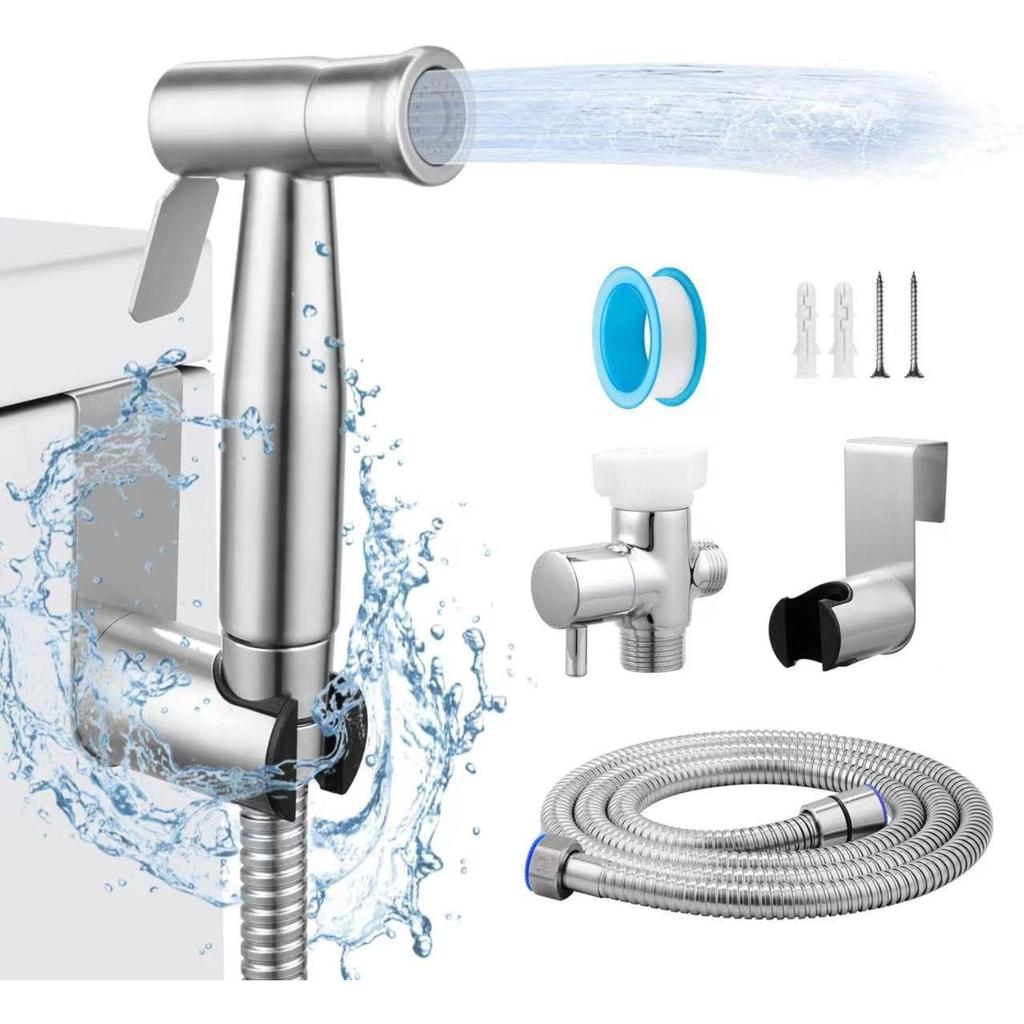 Multifunctional Hand-held Bidet Spray, Bathroom Diaper Shower, Hose and Accessories - Toilet Sprinkler with Dual Spray Function (Silvery)