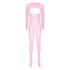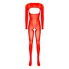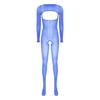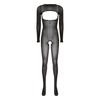 Damska błyszcząca prześwitująca body-pończocha z długim rękawem, otwarta w kroku i na biuście