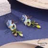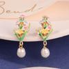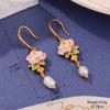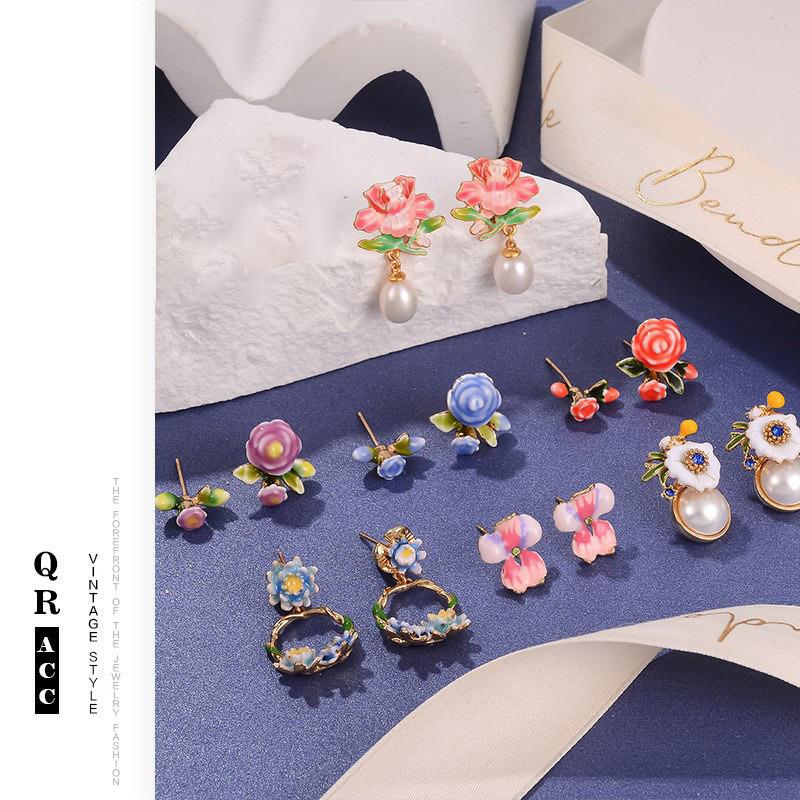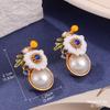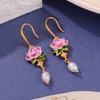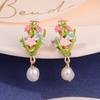 Fresh new Chinese flower stud oil painting style high-end enamel pearl earrings vintage national style tassel earrings women