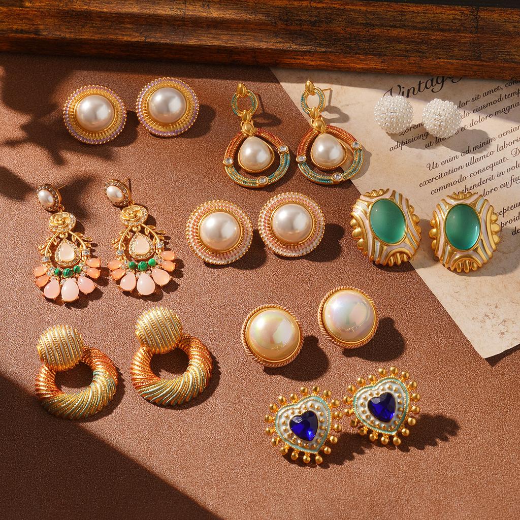 Medieval painted pearl earrings retro vintage fringed French niche design love light luxury stud earrings silver needle