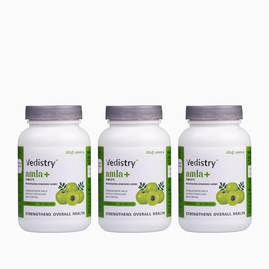 Vedistry Amla+ Tablets 60 Tablets X Pack of 3 | Immunity Energy Booster with Vitamin C for Hair Skin Anti-Ageing Wellness