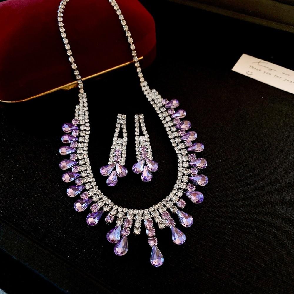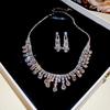 Water Drop Rhinestone Jewelry Set Shiny Inlaid Tassel Necklace Earrings Set Luxury Exquisite Crystal Necklace Set Women