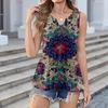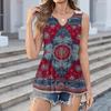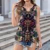 Modny Damski Nowy Retro Kwiatowy Teksturowany Dekolt V Luźny Casualowy Zwiewny Bezrękawnik Top