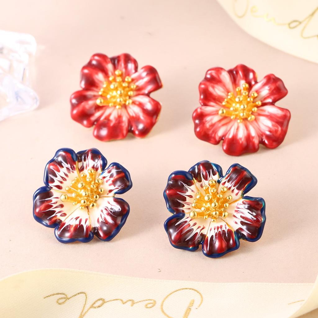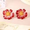 Red three-dimensional enamel flower earrings spring French high-end retro niche versatile fashion earrings