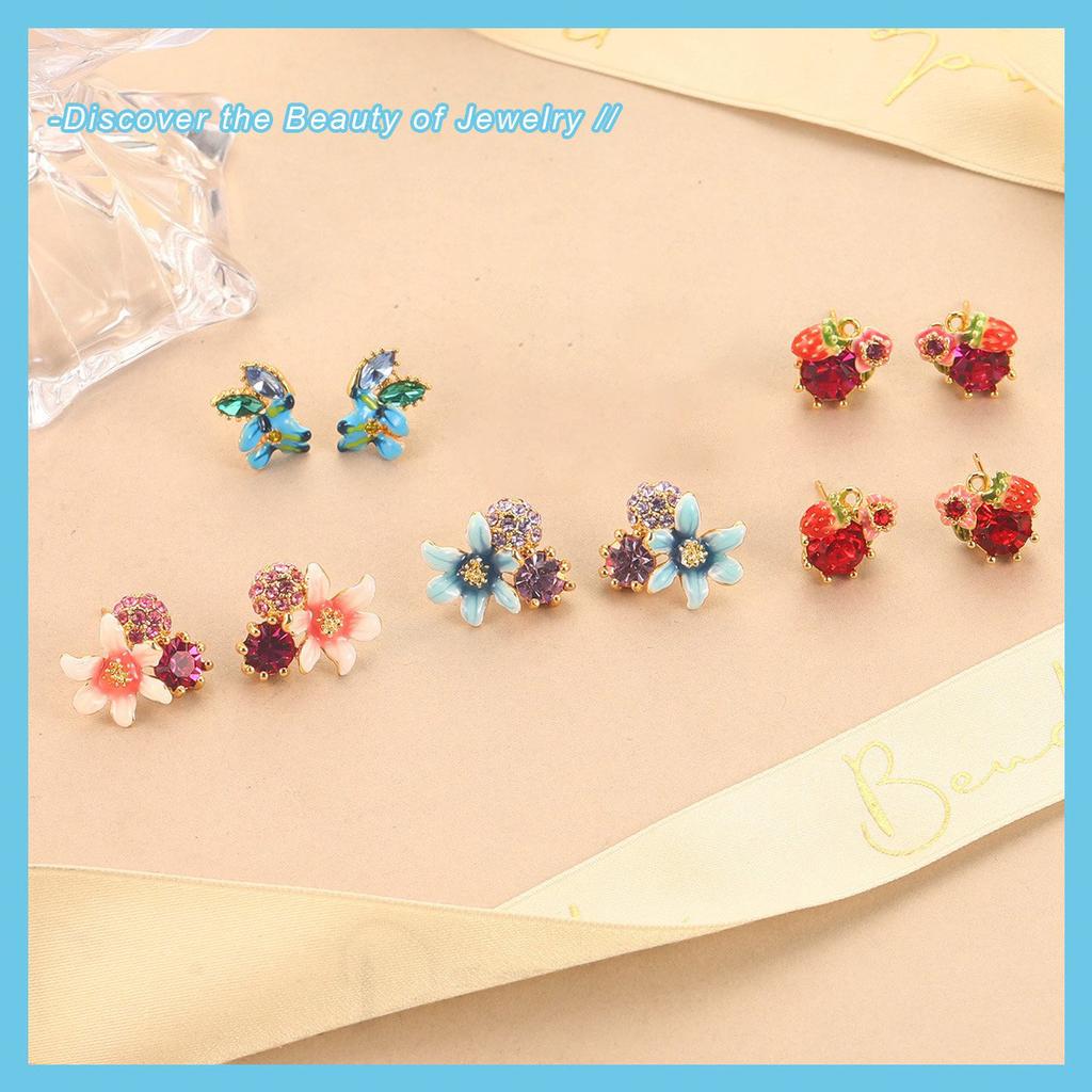 Mini kolczyki kwiatowe proste nowe kolczyki kolor emaliowany kropla oleju diament trójwymiarowe słodki temperament kolczyki