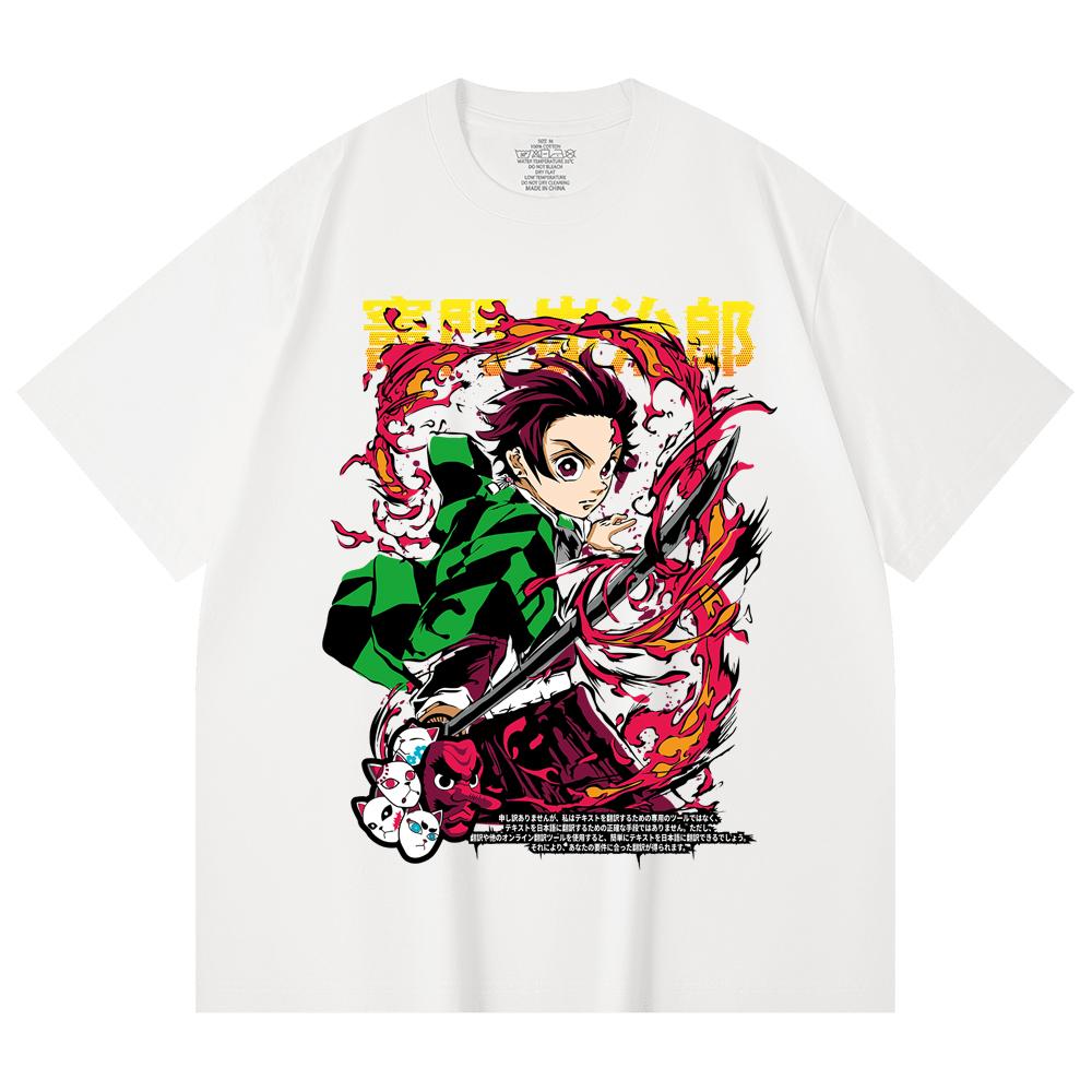 230 Gsm 100% Cotton Demon Slayer V19 Tanjiro Print Unisex Heavy Cotton T Shirt