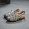 Johnature Ręcznie tkane sandały na płaskiej podeszwie z prawdziwej skóry, z okrągłym noskiem. Codzienne, wszechstronne buty damskie