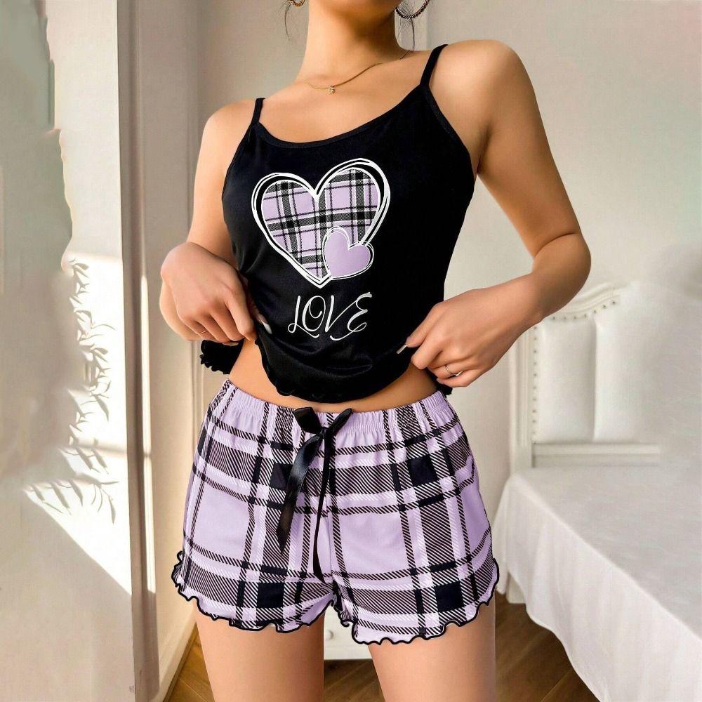 Homewear Women's Pajamas Set Bowknot Cami Shorts Pajamas Sweet Two Piece Nightwear Girl
