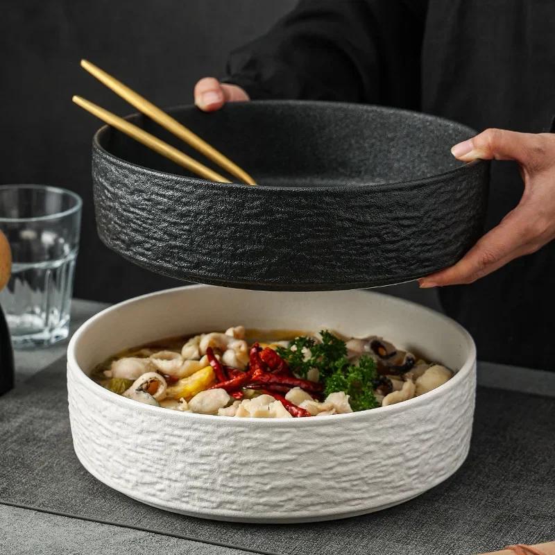 10inch Frosted Matte Finish Soup Bowl Black White Ceramics Stone Pattern Home Hotels Restaurant Big Bowl Porcelain Tableware