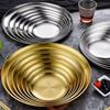 1 Pcs Thickened New Stainless Steel Disc Golden Cafe Tray Dining Disc Fruit Meat Dessert High Quality Round Plate Shallow Tray