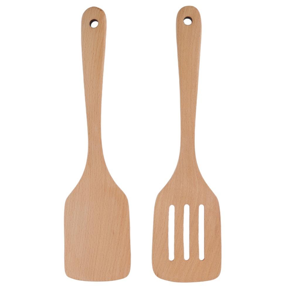 2PCS Large Size Wooden Spoons 12in Pancake Flipper Cooking Utensils Wooden Spatulas Kitchen