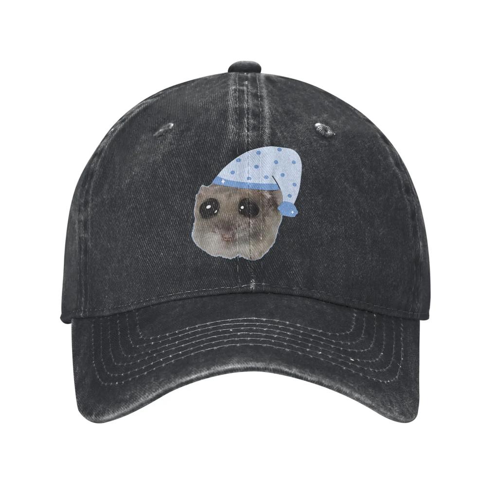 Funny Hamster Sleep Cute Bed Time Baseball Caps Vintage Distressed Denim Sleepy Headwear Unisex Women Outdoor Adjustable Fit Hats