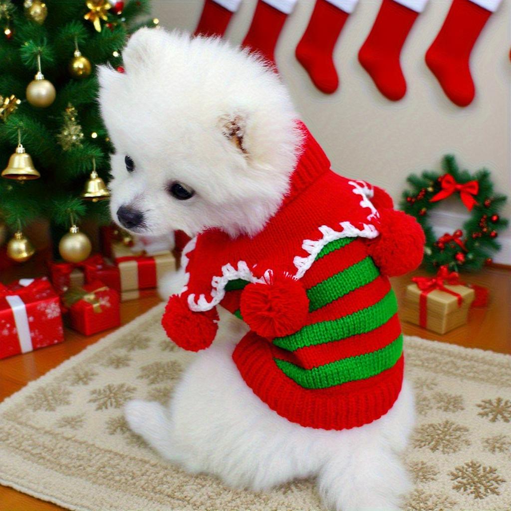 Ubranka dla zwierząt Pies Kot Sweter Świąteczny Jesień i Zima Ciepły i Wygodny Kolorowy Sweter Dzianinowy Czerwono-Zielone Paski