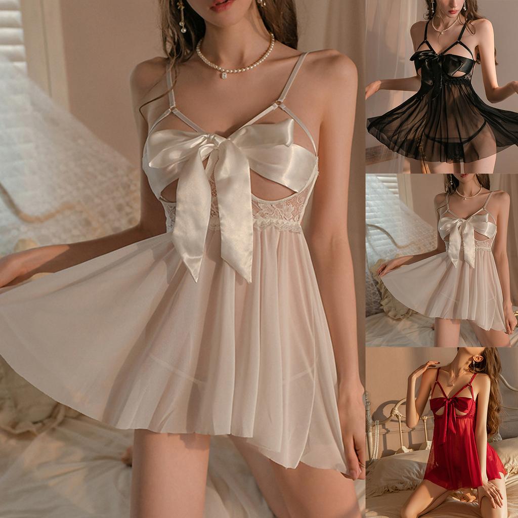 Ladies' Sexy Underwear Lace Nightgown Set With Large Bow