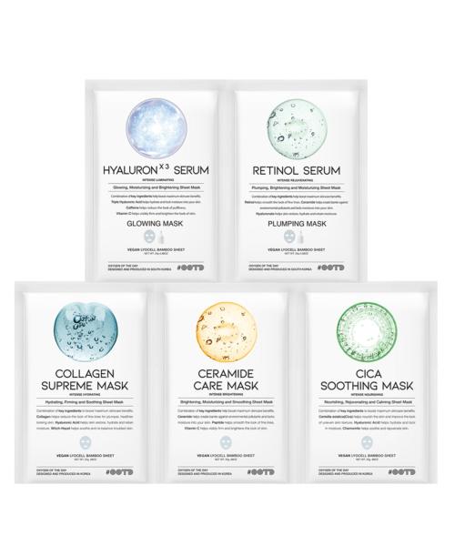 OOTD Beauty Hydrating Sheet Mask 5-Pack (Hyaluron, Cica, Retinol, Collagen, Ceramide)