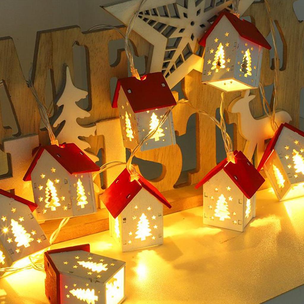 2-meter 10 LED USB Christmas String Lights Wooden Small House Shape LED Light String Star Christmas Tree Decorative Light