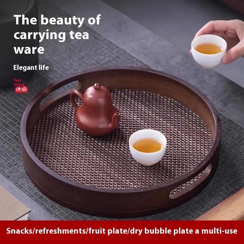 Tea Tray Tea Set Tea Cup Water Cup Tray Home Living Room Fruit Dim Sum Round Dry Soak Tray Bamboo Tray Tea Ceremony