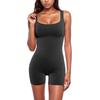 Damski bezrękawnik bez rękawów, kombinezon z kwadratowym dekoltem i podnoszeniem bioder, obcisły seksowny kombinezon z krótkimi spodenkami