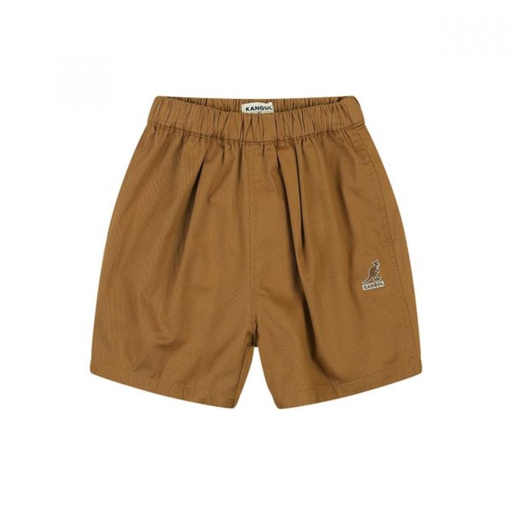 [Baby] Cotton Banding Shorts SB 0D11 Brown (BSBCPT0D110BR) is a knee-length pant made from medium stretch cotton-spandex material. The natural tuck and pleats on the front, along with the oversized and rounded cut, provide a cute design. With an elastic waistband in the back, it allows for comfortable wear during activities, and it can be easily coordinated with various tops.
